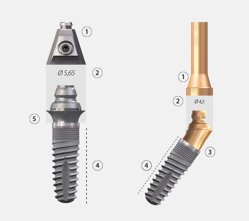 Facile presa dell'impronta con gli impianti inclinati, a livello degli impianti, grazie alla compensazione dell'angolazione fino a 35°.